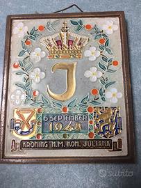Piastrella cloisonne Delft vintage cm 12 x 13 Piastrella cloisonne vintage emessa in occasione dell’incoronazione di Juliana nel 1948 cm 12,5 x 15