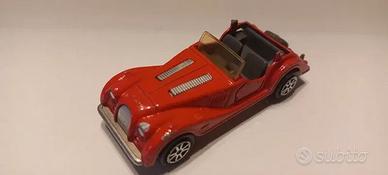 Modellino di auto d'epoca Morgan della Majorette, scala 1:50. Colore rosso brillante; dettagli fedeli all'originale