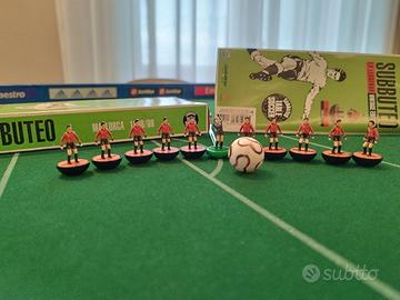 Squadra Subbuteo La Leggenda Vintage Edition HW - Mallorca 1998/99. La squadra è in perfette condizioni come da foto, davvero pari al nuovo in quanto usata solo una volta. È compreso anche il libretto della squadra N.B. Il pallone che vedete in foto non è incluso nella vendita