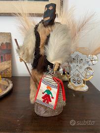 Pezzo unico di Mamuthones sardo (statue tipiche sarde). Altezza 35cm Legno, sughero e pelo naturale