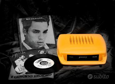 Nostalgico mangia dischi PENNY degli anni '70, appena revisionato e funzionate al cento per cento. Esteticamente in ottimo stato come si vede dalle foto. Modello con doppia alimentazione: 6 pile mezza torcia (C) & AC 220 Volts. Corredato del cavo di alimentazione (nuovo). Sportelletto vano pile non originale. In regalo 3 dischi 45 giri. Ritiro, previa prova, a Roma zona Colli Aniene. Prezzo non trattabile. Disponibile anche azzurro, rosso ed arancione.