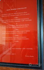 manifesto discografico anni 70 con immagine di Che Guevara su sfondo rosso con il testo della canzone Hasta Siempre Comandante