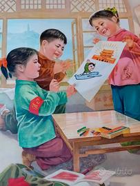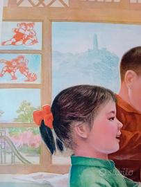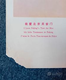 Manifesto comunista cinese "Amo la Porta di Tiananmen di Pechino". Questo manifesto è accreditato nella collezione Landsberger come opera del 1972. Secondo Landsberger i tre bambini si trovano a Yan'an. Tiananmen, "Porta della Pace Celeste", è l'icona del potere della Repubblica Popolare Cinese ed il luogo da cui Mao Zedong proclamò la nascita della RPC. I bambini rappresentano il futuro e la continuità della Rivoluzione, collaborano o condividono un disegno simboleggiando la cooperazione armoniosa nella costruzione del socialismo. La loro gioia è la promessa di un futuro prospero e felice. Il disegno che uno dei bambini mostra (un bambino su un razzo, che vola sopra Tiananmen) è il simbolo del progresso tecnologico e riflette l'ambizione di competere in campo scientifico e tecnologico. La copia in vendita è stampata nella Repubblica Popolare Cinese dalla "Casa Editrice Popolare di Belle Arti dello Shaanxi" che pubblicava manifesti destinati all'esportazione internazionale, come testimoniato dalle lingue (cinese, inglese, tedesco e francese). Distribuito dalla "Libreria Internazionale della Cina di Pechino" responsabile dell'esportazione di prodotti culturali e politici cinesi. Dimensioni 77 x 53 cm (la dimensione standard dei manifesti ufficiali e originali dell'epoca). Le condizioni generali sono "ottime vintage" fatto salvo le imperfezioni date dal tempo e dalla conservazione. Va sottolineato che uno degli angoli ha una mancanza di carta come si nota dalle fotografie. Al momento il manifesto è tenuto disteso e con una leggera pressione per evitare danneggiamenti. Verrà inviato arrotolato in un tubo di cartone rigido. Oggetto raro. Il prezzo tiene conto dell'imperfezione del manifesto. Sono disponibili altre foto.