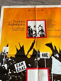 Manifesto cinematografico originale d’epoca del film La recita (O Thiasos), capolavoro di Theo Angelopoulos, uno dei titoli fondamentali del cinema europeo e politico degli anni ’70. Edizione italiana, versione originale, grafica iconica con forte impatto visivo.