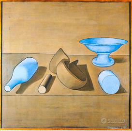 Autore: Giorgio Morandi Titolo: Morandi Tecnica: Manifesto offset a colori su carta Editore: Arte Immagine, Parma Firma: Firma dell’artista riprodotta nell’immagine Datazione: 1990 Misure: 68 × 84 cm ca. Stato di conservazione: Buono. Lievi segni del tempo coerenti con l’età del manifesto; carta complessivamente ben conservata, colori ancora equilibrati e leggibili. Descrizione dell’opera: Manifesto originale realizzato in occasione della mostra dedicata a Giorgio Morandi presso il National Museum of Modern Art di Kyoto, tenutasi tra aprile e maggio 1990. L’immagine riproduce una celebre natura morta dell’artista, caratterizzata da oggetti quotidiani essenziali — bottiglie, contenitori e una coppa — disposti secondo il rigoroso equilibrio compositivo che contraddistingue tutta la sua produzione. La tavolozza, dominata da tonalità calde e smorzate, restituisce la poetica sospensione temporale tipica di Morandi, trasformando oggetti comuni in presenze silenziose e meditate. La grafica del manifesto è sobria ed elegante, con il nome dell’artista in evidenza nella parte superiore, in armonia con l’immagine centrale. Note sull’artista / Monografia: Giorgio Morandi è considerato uno dei massimi pittori italiani del Novecento e una figura di riferimento assoluto nella storia dell’arte moderna internazionale. La sua ricerca, concentrata prevalentemente sul tema della natura morta, si distingue per l’estrema riduzione formale, l’attenzione alla luce e ai rapporti tonali, e una profonda indagine sullo spazio e sul silenzio. Le sue opere sono conservate nei più importanti musei del mondo e continuano a esercitare una forte influenza su generazioni di artisti, designer e studiosi. I manifesti espositivi a lui dedicati, soprattutto quelli realizzati per mostre internazionali, rappresentano oggi significativi documenti storico-culturali e sono molto ricercati da collezionisti di grafica d’arte e modernariato museale.