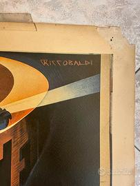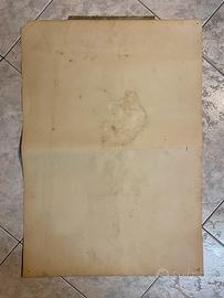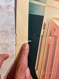 🌀 Manifesto pubblicitario FIAT – Vittorio Riccobaldi / Nebiolo – Ristampa anni ’70. Affascinante manifesto che riproduce una delle più celebri grafiche pubblicitarie FIAT del periodo tra le due guerre, firmata da Vittorio Riccobaldi. L’immagine, dinamica e visionaria, cattura perfettamente l’estetica futurista e il senso di progresso che caratterizzavano l’epoca: le automobili percorrono una rampa elicoidale costruita sulle monumentali lettere FIAT, simbolo di potenza e modernità. 🖨️ Questa è una ristampa rara degli anni ’70, realizzata dalla storica Tipografia Nebiolo di Torino, famosa per la qualità delle sue produzioni e per l’importanza che ha avuto nella storia della stampa italiana. La carta è Fedrigoni Acquerello, stampata in offset Invicta 238R, come indicato nella parte inferiore del manifesto. 📐 Formato 66 x 46 cm, condizioni complessivamente buone ma con segni del tempo e piccole lacerazioni ai margini (come da foto). Tutti i dettagli sono visibili nelle immagini, che fanno parte integrante della descrizione. Venduto senza vornice in apposito tubo protettivo.
