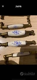 Maniglie antichi in ottone rifiniti in ceramica