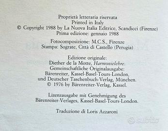 Manuale Di Armonia - Diether de la Motte - Prima Edizione La Nuova Italia 1988. Teoria Musicale. Edizione italiana a cura di Loris Azzaroni