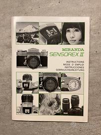 Manuale originale per fotocamera reflex Miranda Sensorex II, in ottime condizioni. Include la guida multilingue e il libretto d’istruzioni italiano distribuito da Ilford S.p.A. Contiene tabelle ASA/DIN, guida all’esposizione, uso del flash e schemi tecnici. Indispensabile per collezionisti.