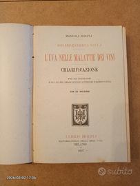 Raro manuale Hoepli intitolato "L'uva nelle malattie dei vini. Chiarificazione. Per gli enotecnici e gli alunni delle scuole superiori d'agricoltura", di Rosario Averna Saccà.