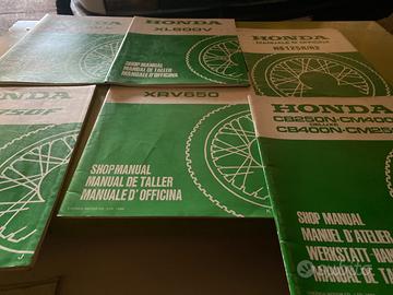 VENDO A 35 euro cadauno manuali officina in 4 lingue straniere x HONDA XL250R 1982. XL250S 1978. FT 500 1982 VF750 F 1983. CX 500 prima serie( manca solo la prima di copertina). Honda CBX400/550F/F2 1984 manca la prima di copertina e la rilegatura e divisa in 2 tutte le pagine presenti offro la spedizione. A 20 euro manuale officina in ITALIANO SCOOTER NH50HI 1989. SEMPRE IN 4 lingue straniere: SUPPLEMENTO CON 200 pagine x CBX1000 sei cilindri pro-link 1981 euro 20. SUPPLEMENTO honda GL1100/1100DX 1981 con 20 pagine e schema elettrico euro 15. Supplemento 25 pagine CBX 400/550 1982 euro 12. 50 pagine 1982 x HONDA CB250N/400N ANCHE VERSIONE CUSTOM T 1982 con schemi elettrici euro 16. 45 pagine x CX400/500 anche custom C anno 1981 con schemi elettrici euro 15. SUPPLEMENTI IN ITALIANO da 25 a 50 pagine ognuno A 18 euro : CBR 1000F 1989 schema elettrico. GOLDWING 1500A/SE 1994 e VF750 custom 1988 e 125 NSR/R2 1987 senza schema elettrico euro 10. VFR 750 F 1987 e 1988 con schema elettrico. AFRICA TWIN 1989 schema elettrico euro 15. XL600 V transalp 1990 schema elettrico. TRANSALP 1993 schema elettrico Transalp 1997 schema elettrico. MANUALE OFFICINA IN 3 lingue straniere HONDA Cr125R cross anno 92 a 25 euro. Cataloghi ricambi anni 1988/90/92 GARELLI /FANTIC A 15 euro: TRIAL 50/80. Trial coach. CABALLERO 50 rs Caballero 50 rs-rc e 80 rs. TRIAL 50/80 serie 7. A 10 euro : KATIA BI. PONY GARY. GARY SPECIAL FAST 50. Joy 50. Joy vk-vkl LISTINI PREZZI A 8 euro: generale fantic motor 1992. Superciclone gary issimo katia 1992. Gary catia 1992.RISTAMPE CATALOGHI RICAMBI BIMOTA YB6 1989. KB3 1000. Furano. DB2 SR. 25 euro cadauno. CATALOGO ORIGINALE IN PERFETTO STATO X BIMOTA SB8 R anno 1999 euro 65.