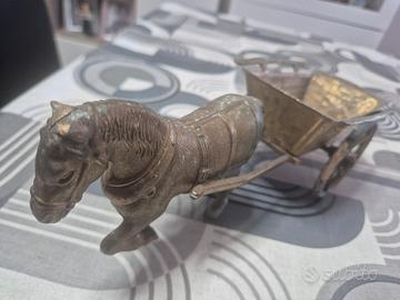Proponiamo in vendita splendido manufatto in bronzo raffigurante un cavallo bardato che traina un carretto tradizionale.