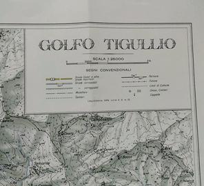 BELLA MAPPA VINTAGE DETTAGLIATA A COLORI SCALA 1:25000 DEL GOLFO DEL TIGULLIO