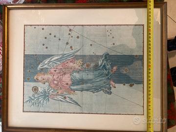 Immagine della costellazione della Vergine completa di cornice in legno dorato e vetro.