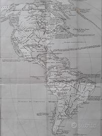 Mappa storico fisica delle Americhe del Nord e del sud di Levasseur c. 1845. Include note storiche. In buone condizioni misura cm. 35,5x25,5.