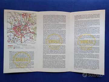 Mappa pieghevole Shell della città di Köln / Colonia, scala 1:20.000, anni ‘50-‘60. Formato 12 x 22,5 cm piegata, 45 x 36 cm aperta. Stampa in policromia. Bella carta stradale vintage, firmata dalla Mairs Geographischer Verlag di Stoccarda e venduta nelle stazioni di servizio della Shell, nell’allora Germania Occidentale, al prezzo di 25 Pfennig. Questa copia, in particolare, riporta il timbro della “Shell-Station Jean Schorn”, situata in Riehler Strasse 191 e oggi non più esistente. Il timbro include la data “10. AUG. 1962”. Il foglio di copertina della mappa chiusa raffigura il celebre Duomo di Colonia, il monumento più rappresentativo della città, mentre sul retro è stampata la carta geografica della Repubblica Federale Tedesca con i confini del tempo e l’indicazione dei centri abitati per i quali erano disponibili mappe Shell. All’interno del pieghevole, un testo illustrativo della città dal punto di vista storico e turistico, una piccola cartina di Colonia con i suoi immediati dintorni in scala 1:200.000 e la pubblicità di altre pubblicazioni Shell (atlante, guida e cartine). Ottimo stato di conservazione. Nessuna scritta, nessuno strappo né piega. Prezzo richiesto: 10 euro. Eventuali spese postali: + € 2,00 per invio come piego di libri, + € 5,00 per invio come piego di libri raccomandato. Possibilità di spedizione cumulativa in caso di altri acquisti. Possibilità di ritiro a Milano dopo accordi.