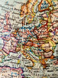 Bel globo terrestre d’epoca di produzione tedesca, pubblicato da Wagner & Debes, con cartografia in lingua tedesca e diametro di circa 25 cm. La sfera, ben leggibile e molto decorativa, presenta una ricca impostazione geografica d’epoca con confini politici, linee ferroviarie e rotte marittime a vapore, elementi che restituiscono con immediatezza tutto il fascino della cartografia scolastica e divulgativa del primo Novecento. Il globo è montato su una elegante base tornita in legno, con supporto in metallo e piccola bussola incassata nella base. Wagner & Debes, storica casa cartografica di Lipsia, che da li a poco acquisì la sezione dedicata alla produzione di globi di Ludwig Julius Heymann. Il globo è stato revisionato e aggiornato dal famoso cartografico Dr. H. Fischer. Le condizioni conservative sono buone in rapporto all’età, con normali segni del tempo e dell’uso, leggere usure superficiali e piccole imperfezioni coerenti con gli anni, senza compromettere la leggibilità della cartografia. Un oggetto autentico, colto e di grande presenza, ideale sia per collezionisti sia come raffinato elemento d’arredo