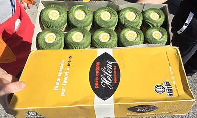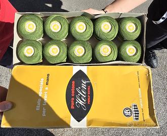 6 scatole da 10 matasse ciascuna (totale 60 matasse) di cotone verde per uncinetto/lavoro a mano, marca Hélène Perle' Extra, puro cotone qualità superiore, gr. 50 per matassa. Prodotto italiano originale Manifattura Italiana Fanti, perfette per hobbisti, maglia, uncinetto . Condizioni ottime, mai usate, con confezioni originali. Prezzo: 120€ trattabili