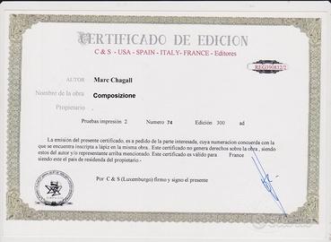 Litografia originale Chagall firma Autorizzata vedi certificato.