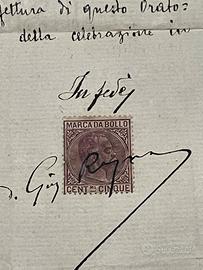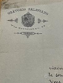 Marca da Bollo da cent. 5 usato su foglio di carta intestata Oratorio Salesiano - Via Cottolengo nr.32 - TORINO. A firma di un prelato in data 20 dicembre 1905