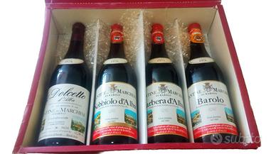 Marchesi di Barolo Selezione Vini 1976 Barolo, 1977 Barbera, 1978 Nebbiolo, 1979 Dolcetto DESCRIZIONE: Selezione Antiche cantine d'invecchiamento Marchesi di Barolo: 1 Barolo DOC numerata annata 1976, 1 Barbera d'Alba DOC numerata annata 1977, 1 Nebbiolo d'Alba DOC numerata annata 1978, 1 Dolcetto d'Alba DOC Riserva numerata 1979. 4 Bottiglie numerate da 0,75 cl. IN CONFEZIONE ORIGINALE Spedizione con corriere SDA o BRT tracciato Ritiro in Torino/Chivasso/Novara e zone limitrofe previo appuntamento da concordare. PER INFO: Daniele Tel/WhatsApp 3331527407 tramite la messaggistica dedicata del sito