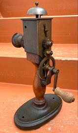 Marchingegno da antico negozio di filatura FUNZIONANTE SIA MANOVELLA CHE OROLOGIO E LA CAMPANELLA SUONA , Molto Raro 1840 Vedi Descrizione Completa. Stupendo attrezzo del 1840 dell’ing.burdet di Lyon che serviva per misurare il filo tramite una spoletta un orologio una manovella ingranaggi ed un campanello posta sopra che ogni tot di giri suona a , faceva un “bin”in legno bronzo ferro e ghisa