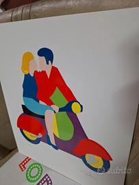 opera grafica del maestro Marco Lodola ,serigrafia materica su cartoncino a 35 passaggi di colore con interventi in smalti,glitter,foglia oro,argento e passaggi calcografico a secco