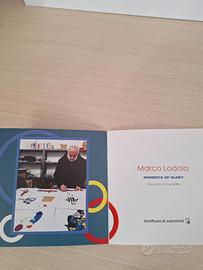 opera grafica di Marco lodola, serigrafia materica su cartoncino a 31 passaggi di colore con interventi in glitter, smalti, collage floccaggi foglia oro argento e bronzo opera firmata e numerata dall'artista titolo: the Red of a legend misura: 35x50 autentica:catalogo di pubblicazione arte focus arte Pentagono editore autorizzato prezzo trattabile!