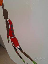 opera grafica di Marco lodola, serigrafia materica su cartoncino a 33 passaggi di colore con interventi in glitter, smalti, collage, floccaggi foglia oro argento e bronzo opera facente parte della nuova serie dedicata allo sport dal titolo moments of glory. rappresenta il grande Michael jordan opera firmata e numerata dall'artista titolo: jump 23 misura: 50x35 autentica:catalogo di pubblicazione arte focus arte Pentagono editore autorizzato prezzo trattabile!