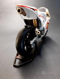 Il figurino di valentino in foto è stato venduto.. quindi l'annuncio è riferito al solo modellino della.moto... non è una minichamps... il modellino è in buone condizioni la moto e blla ma presenta sul frontale una leggera ingiallitura che non pregiudica di molto l'estetica...il modellino è stato in una vetrina per diversi anni..la vendo per 46 euro...