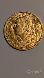 Marengo 20 franchi svizzeri del 1927 moneta d’oro