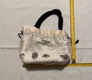 Borsetta a mano Firmata Marina D’Este. Seta e ricami . Cm 20x23.