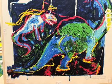 Mario schifano Titolo: Dinosauri Tecnica: Serigrafia a colori Misure: 100x100cm Firma e tiratura in basso con timbro a secco