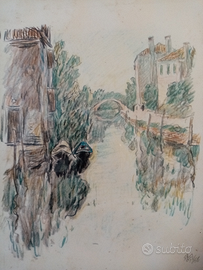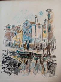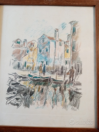 4 litografie a colori con cornice dell'epoca anno 1966 il primo quadro rappresenta, una piccola merlettaia buratenella il secondo veduta di Burano il terzo il canale di torcello il quarto orto di mazzorbo con caratteristico campanile d'edera sullo sfondo. Il prezzo indicato è cadauno se presi in blocco prezzo affare