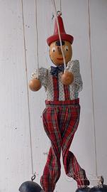 Marionetta Burattino Pinocchio Vintage Marionetta Pinocchioin legno, missa dall'alto tramite fili collegati ad una croce in legno