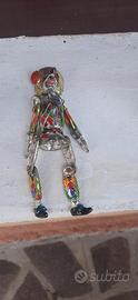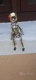 Buongiorno, vendo marionetta di Arlecchino vintage, in metallo piombo, snodabile, personaggio della commedia Italiana, usata ma ben tenuta, molta bella, alta cm. 13, grazie per l'attenzione.