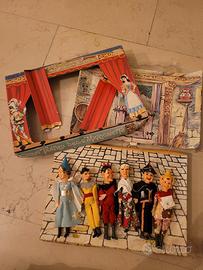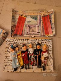 Marionette Vintage, anni '70, complete di scatola originale che si monta e si trasforma in teatro.