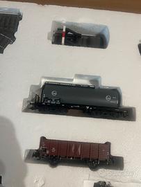 Confezione completa di binari carri e locomotiva digitale con 16 funzioni e centralina di ultima generazione usata ma in ottimo stato .