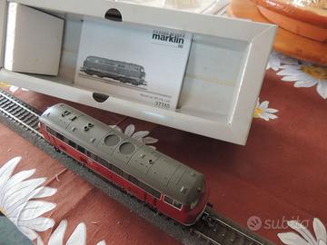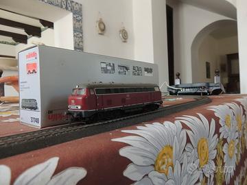 La locomotiva V 160 della Deutsche Bundesbahn (DB) era una locomotiva Diesel, progettata per il traino di treni pesanti su linee non elettrificate. Entrò in servizio nel 1960 ed i sei prototipi, a causa delle loro forme bombate e arrotondate, ebbero il soprannome "Lollo" con riferimento a Gina Lollobrigida. Fu riclassificata nel 1968 nella serie 216 e rimase in servizio fino al 2003. La 37740 di M è appunto uno di questi sei prototipi e per questo sulla scatola, vedi prima foto, si legge “Lollo”. La locomotiva è dotata di decoder digitale mfx e di numerose funzioni sonore. Dispone inoltre di un sistema di propulsione ad alta efficienza controllato con volano, montato centralmente. Tutti e 4 gli assi sono azionati tramite alberi cardanici. Pneumatici di trazione. I tre fari anteriori e le due luci di posizione rosse cambiano colore in base al senso di marcia, funzionano in modalità convenzionale e possono essere controllati digitalmente. La “Lollo” è stata in catalogo dal 2011 al 2015. La vendo in quanto al momento sono orientato su Italia ed USA e riduco quindi Germania e Svizzera Il prezzo di € 180 mi sembra corretto in quanto la “Lollo” ha girato molto poco, in caso posso fare un video di come va.