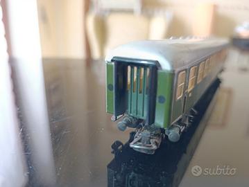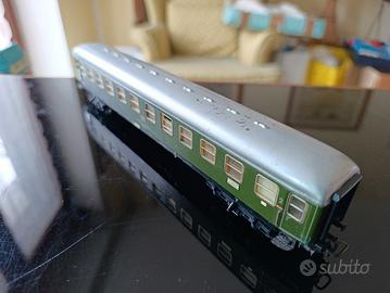 In vendita splendida carrozza passeggeri Märklin 4052 (Versione 1) in scala H0. Un grande classico del modellismo ferroviario in lamiera (Tin-Plate), livrea verde Deutsche Bundesbahn (DB). Modello: 2ª classe Büm 232. Condizioni: Ottime condizioni estetiche come da foto. Scritte nitide e carrelli integri. Dettagli Tecnici: Già equipaggiata con pattino per l'illuminazione interna. Note: Venduta senza scatola originale (No OVP). Sarà imballata con massima cura per il trasporto. Perché acquistarla? Perfetta per completare convogli d'epoca o per amanti del fascino vintage Märklin "Made in Western Germany". #marklin #marklinh0 #modeltrains #trains #h0scale #vintage #tinplate #railway #modellismoferroviario #db #deutschebundesbahn #collectible #memorabilia #westerngermany #modelleisenbahn