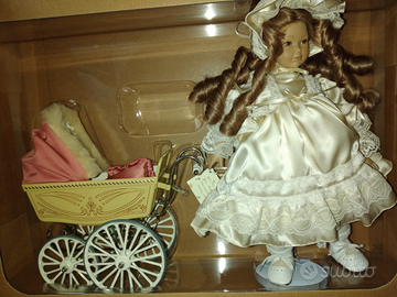 Bambola dipinta a mano con carrozzina in metallo, altezza bambola 31 cm, riedizione del 1995, condizioni perfette, mai uscita dalla scatola originale, ancora fissata con i gancetti. Possibile consegna a mano in Torino e dintorni.
