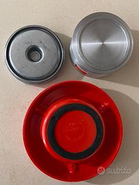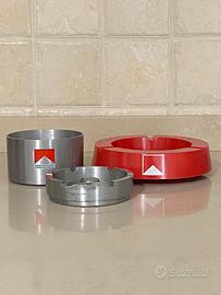 Due oggetti pubblicitari; iconici posacenere o portacenere vintage Marlboro Special Edition Metal and Plastic Ashtray Red and Silver Ferrari. I posacenere sono pezzi rari che celebrano la storica partnership tra il marchio di tabacco Marlboro e la scuderia Ferrari, uno dei più grandi nomi del motorsport mondiale. I posacenere sono stati prodotti nel periodo in cui Marlboro sponsorizzava la Ferrari, a simboleggiare la fusione tra eleganza, velocità e stile di vita. I posacenere sono costituiti da un corpo in metallo di alta qualità con logo in smalto esclusivamente rosso Ferrari brillante e dettagli cromati; corpo in plastica di colore rosso, con logo rosso Ferrari in risalto dai contorni di colorazione bianco e con marchio Mebel ben visibile sul fondo. Le loro dimensioni e misure sono in cm 7x9x9 per un peso di 0,3 Kg. e cm 4x13x13 per un peso 0,1 Kg. circa. I posacenere si presentano in buone condizioni generali estetiche, ancora con una splendida brillantezza per i lievi segni di usura che non intaccano la bellezza degli oggetti ma che anzi testimoniano la loro età. Splendida colorazione. Le foto sono parte integrante della descrizione. Articoli difficile da trovare al giorno d'oggi, un "must" per qualsiasi collezionista perfetto per completare qualsiasi collezione legata al mondo degli sport motoristici, della Formula 1 o ai cimeli di marchi classici. Oggetti destinati a collezionismo o ad uso decorativo. Oggetti visti e piaciuti da documentazione fotografica e nello stato attuale sempre delle condizioni di uso sempre da documentazione fotografica.