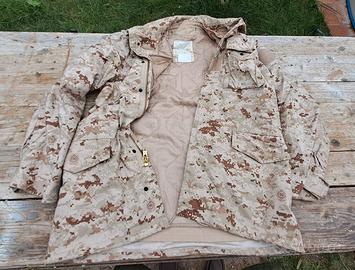 Autentica giacca da deserto pixel mimetica digitale MARPAT della Guardia Nazionale dell'Arabia Saudita simile ai M65 dell'esercito americano. In ottime condizioni, nuova. nessuna macchia o segno di rottura. Completo di fodera interna, anch'essa nuova. Taglia X Large