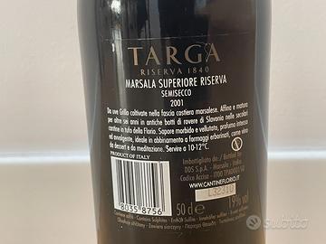 Rara bottiglia di Marsala Targa Superiore, anno 2001.