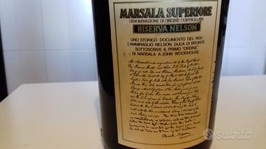 Marsala Superiore Riserva Nelson 1815. 18 gradi 75 cl. Bottiglia acquistata inizio anni 70 in perfette condizioni e con tappo integro. Importata da Ital Savi Vinicola spa. rappresenta pezzo unico e da collezione. Disponibile lotto bottiglie in straordinarie condizioni