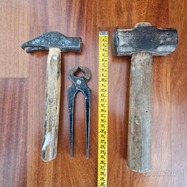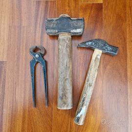 vecchi utensili : mazzuolo ( 1 kg ), martello da carpentiere e tenaglie. Come da foto, buone condizioni