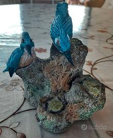 I due martin pescatori esotici in miniatura sono stati modellati utilizzando ceramica a freddo e presentano dimensioni di 7 x 12 x 10 centimetri. Sono stati accuratamente dipinti utilizzando colori acrilici. Per garantire una finitura protettiva, le opere sono state successivamente rivestite con una vernice trasparente. Gli occhi sono stati realizzati in vetroresina, Queste creazioni rappresentano dei pezzi unici e originali, un'opera d'arte che cattura la bellezza e la realtà della natura anche se sono delle miniature.