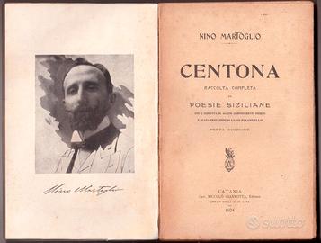 DA COLLEZIONE === Nino Martoglio, Centona raccolta completa di poesie siciliane con l'aggiunta di alcuni componimenti inediti, prefazione di Luigi Pirandello, 6. ed., Catania, N. Giannotta, 1924, pp. XVII, 371, 1 carta di tavola con ritratto dell'autore, cm 20; copertina morbida, interno perfetto, nuovo, lieve e uniforme ingiallimento delle pagine dovuto alla carta del tempo, edizione poco comune, prezzo vera occasione per collezionista, idea regalo Natale.