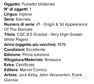 Marvel Comics - The Eternals #1 Prima edizione 1976 (inglese) Graduato (8.5/10) e sigillato.
