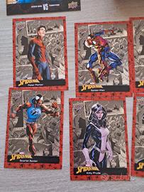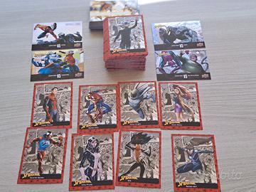 MARVEL SPIDER-MAN 2024 SET BASE COMPLETO (#1-75) + SUBSET SPECIALI BATTLE TIME (#1-25) + 1 pacchetto vuoto e un box vuoto Per un totale di 100 cards con uno sfondo metallizzato UPPER DECK 2024